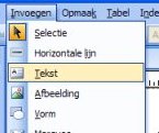 Selecteer Invoegen->Tekst en geef d.m.v. de muis aan op welke positie de tekst moet worden geplaatst. Daarna kunt u de tekst dubbel klikken om de tekst aan te passen. Vervolgens kun je de tekst aan passen op dezelfde manier als in een gewone tekst editor.