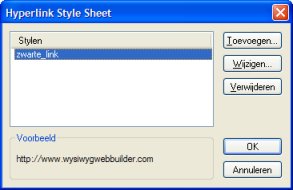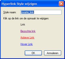 Select Opmaak->Stijlen->Hyperlink Stijlen in het hoofdmenu om de Hyperlink Style Sheet Editor weer te geven.