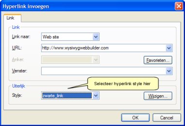Normaal gesproken hebben alle links in een web-pagina de standaard HTML link kleuren. (link:blauw, visited:paars, active:rood, hover:blauw) en zijn onderstreept. Web Builder geeft de mogelijkheid om de kleuren van links aan te passen en het onderstrepen uit te zetten d.m.v. de Hyperlink Style Sheet editor.