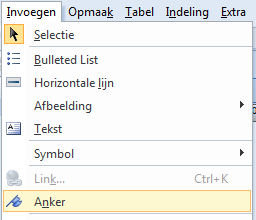 Voeg een Anker object toe via het 'invoegen' menu: Menu->Invoegen->Anker.