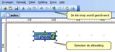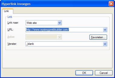 Selecteer de afbeelding, vorm of rollover waar je de link aan wilt toekennen. Kies Invoegen->Link uit het hoofdmenu of druk CTRL+K op het toetsenbord. Het venster Link invoegen wordt nu weergeven.